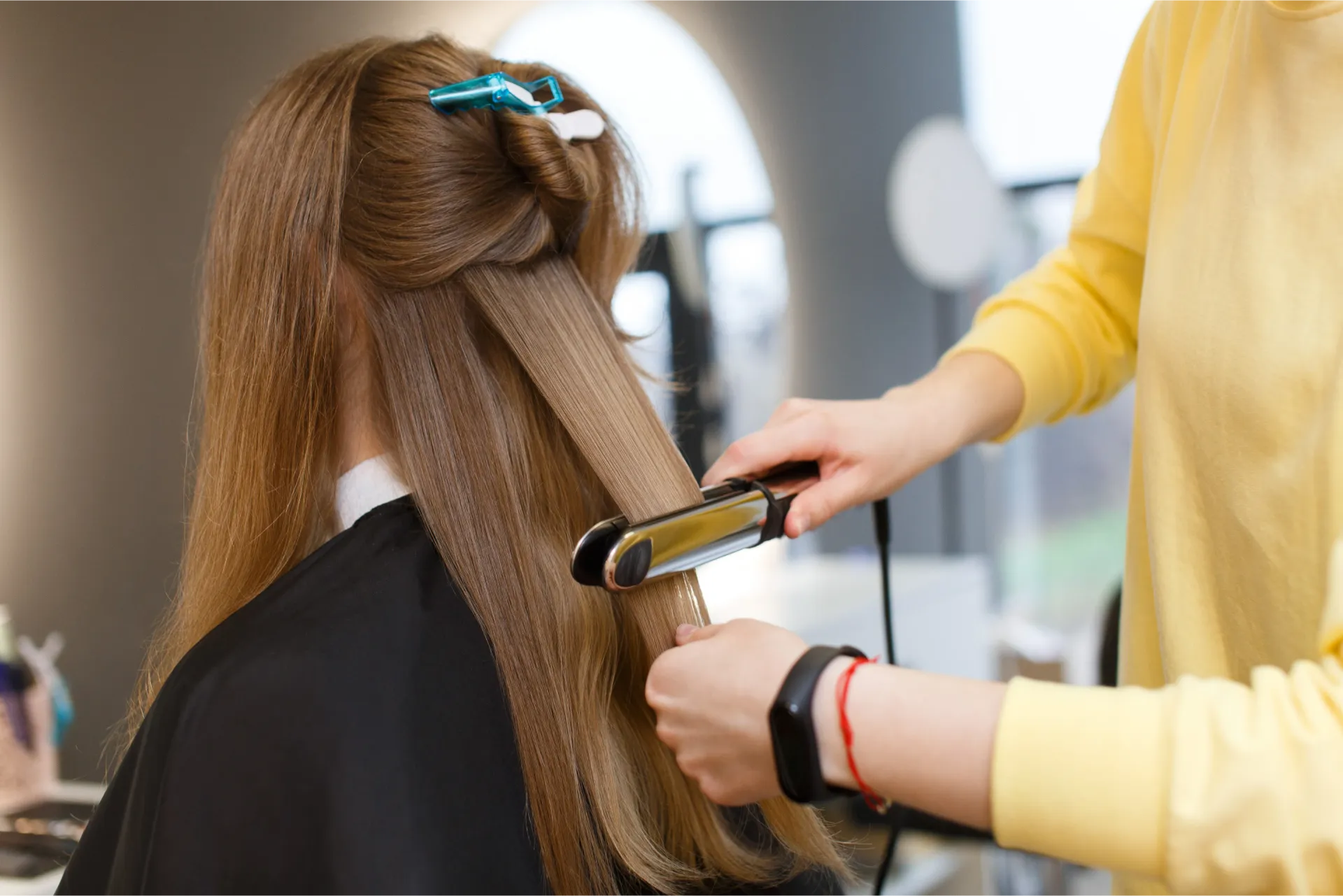 Our client came in with thick, wavy hair and wanted a sleek, elegant look for a formal event. We did a full hair pressing on both sides using heat protectant serum, leaving her hair straight, shiny, and smooth to the touch. The transformation was stunning and long-lasting.