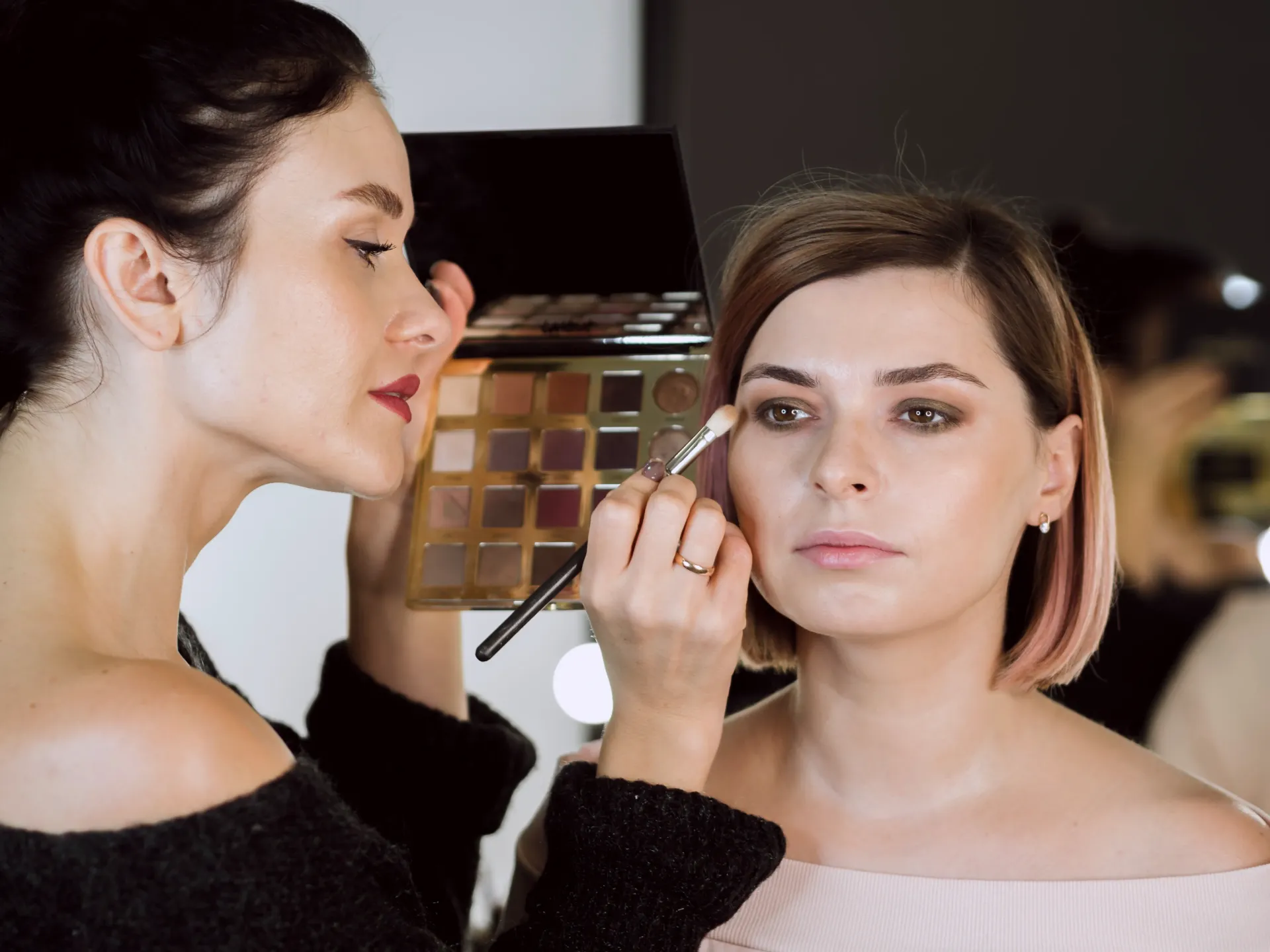 She came in for a party and wanted bold eyes without a full face. We created a black smokey eye with a hint of silver shimmer and dramatic lashes, finished with a light BB cream and nude gloss.